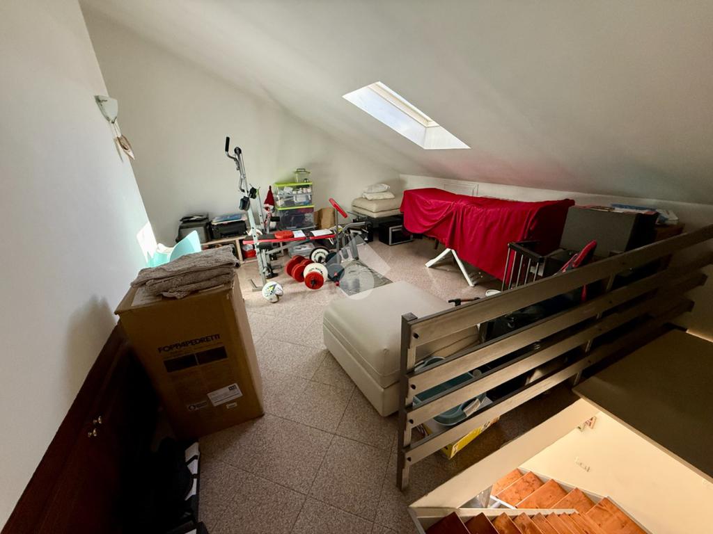Elemento distintivo dell’immobile è la mansarda, collegata sia tramite scala interna sia tramite accesso esterno indipendente. Questo spazio, oggi organizzato come locale hobby e lavanderia con servizio, rappresenta un ambiente estremamente versatile: studio privato, zona relax oppure potenziale seconda zona notte per ospiti o per esigenze future.